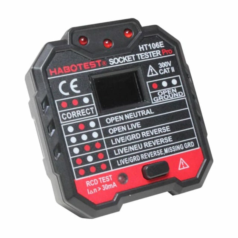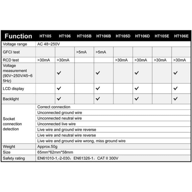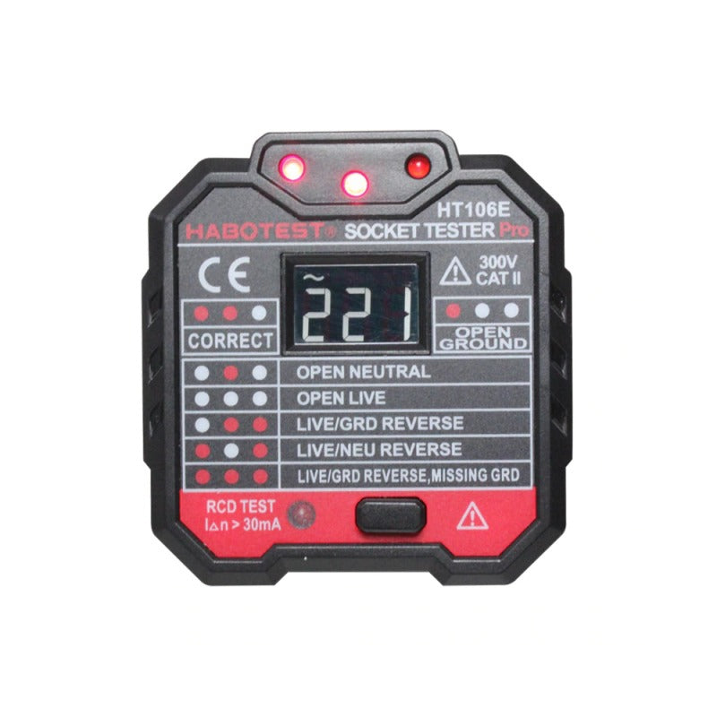 هابوتيست جهاز فحص التيار الكهربائي مع شاشة رقمية، تحقق وقياس صحة توصيل الأسلاك الكهربائية إلى مكابس الكهرباء - HT106E